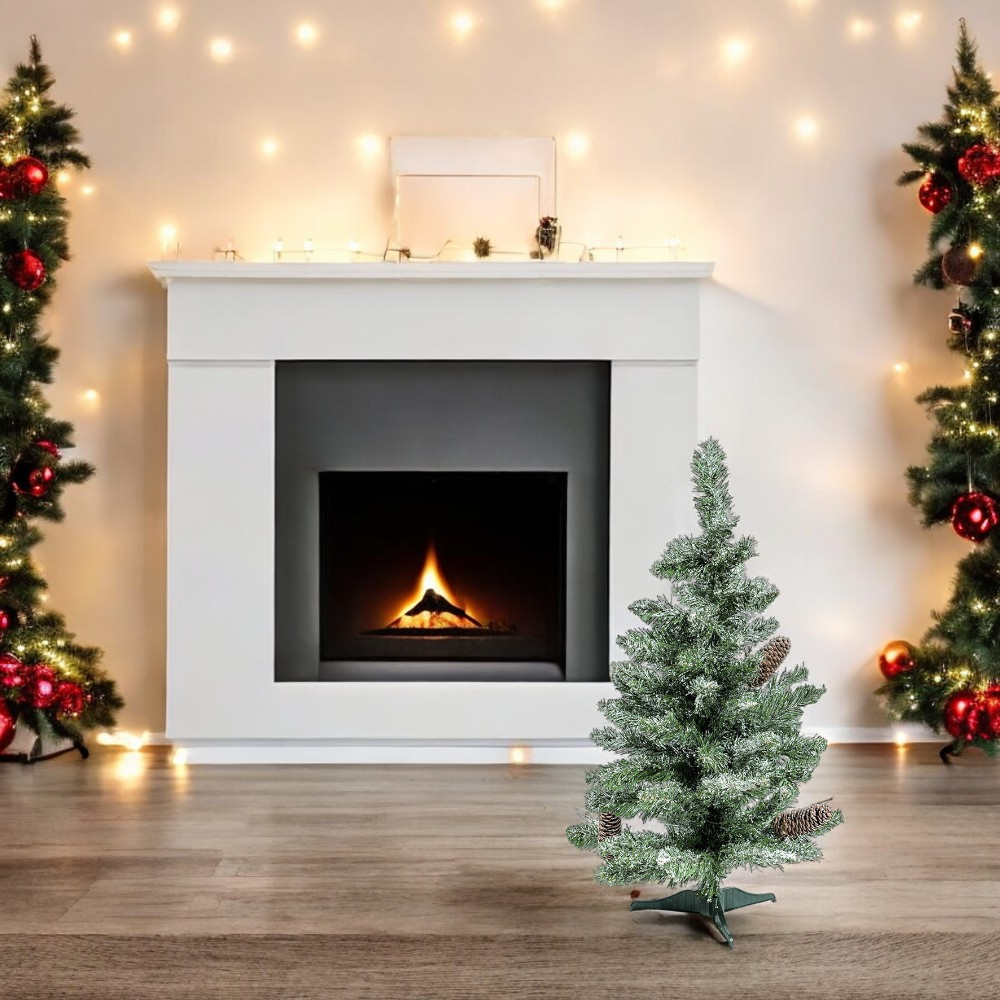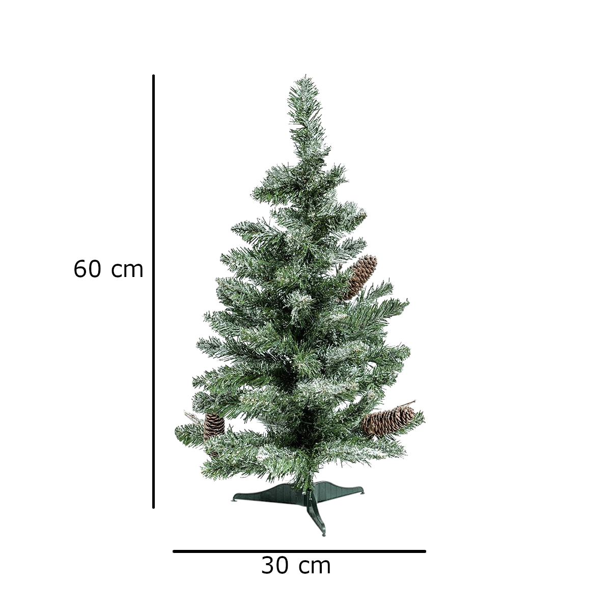 60 cm-es dekoratív asztali havas műfenyő díszítés nélkül, 64 db ággal, műanyag talppal. Ezzel a dekorációs eszközzel igazán kellemes ünnepi hangulatot teremthetünk otthonunkban.