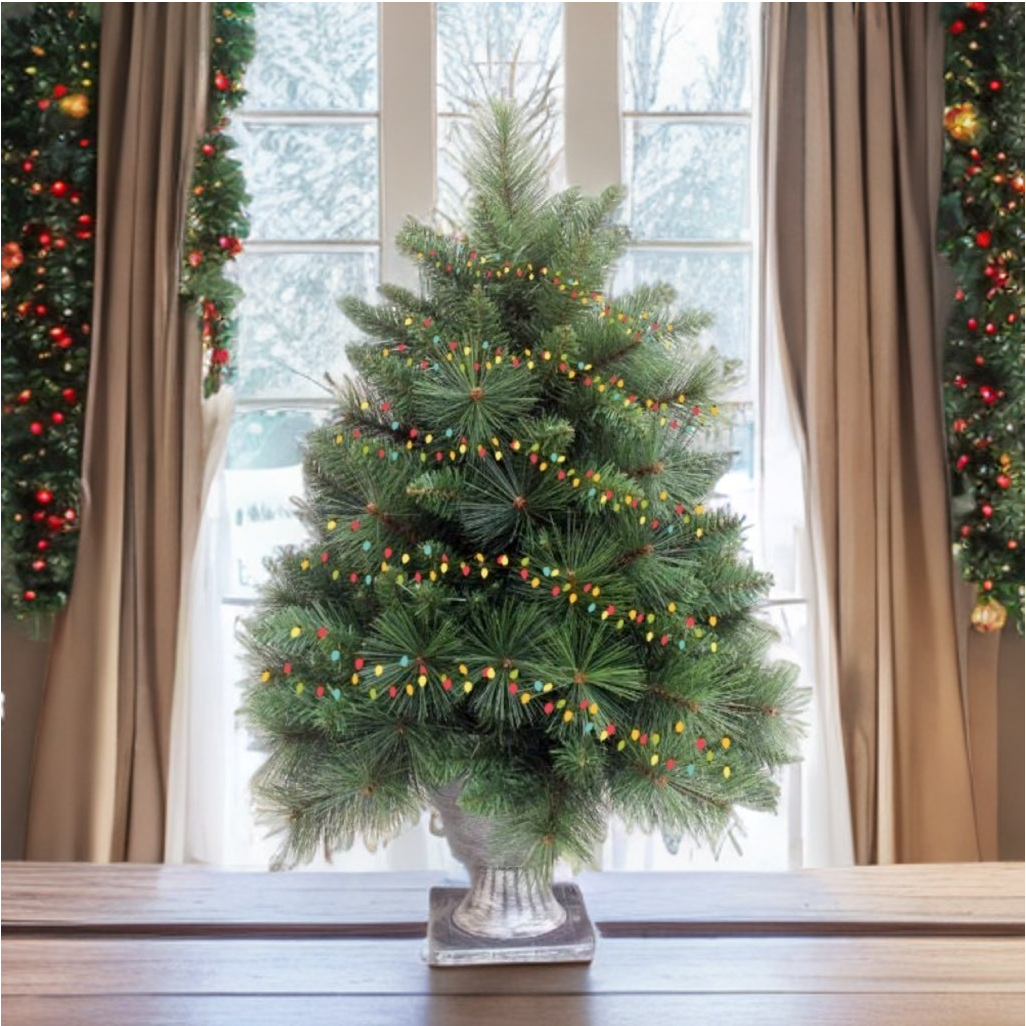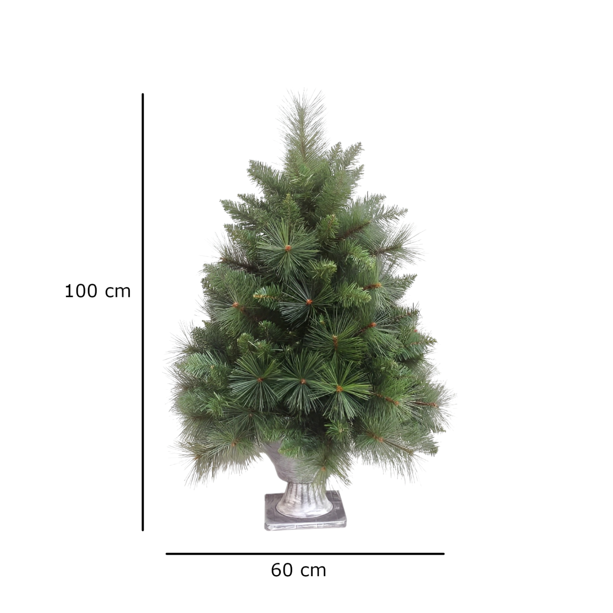 100 cm magas műfenyő, mely kihajtható, pántos ágkonstrukcióval rendelkezik. Műanyag, elagáns kaspóban kínáljuk, a fenyőmagasság a kihajtott csúccsal és a hozzá járó talppal együtt értendő, kevert tűlevelű ágkonstrukció: 2D és tűlevelek váltakoznak a műfenyőn, PVC ágak, zöld, fém lábak. Ezen felül igazán hasznos termék, hiszen évről évre másként díszíthetjük, ezzel is hozzájárulva az ünnep megfelelő hangulatához.