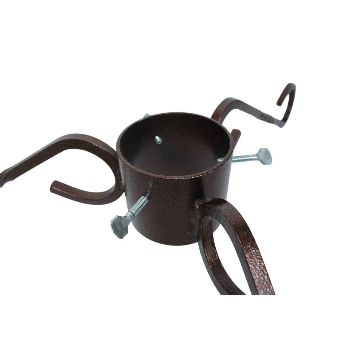 Karácsonyfatalp szinterezett 3 lábú. Csavart lábú. Antikolt bronz/fekete színben. Ez a karácsonyfatalp nem csak esztétikailag kifinomult, hanem rendkívül stabil is. A masszív kovácsolt vasból készült alap megakadályozza, hogy a karácsonyfa megboruljon vagy meginogjon, így nyugodtan élvezheti az ünnepi hangulatot anélkül, hogy aggódnia kellene. Időtálló minőséget és tartósságot képvisel. Az alaposan megmunkált anyag és a gondosan kivitelezett részletek biztosítják, hogy ez a karácsonyfatalp évekig és évtizedekig használható legyen. Csőátmérő: 90 mm.