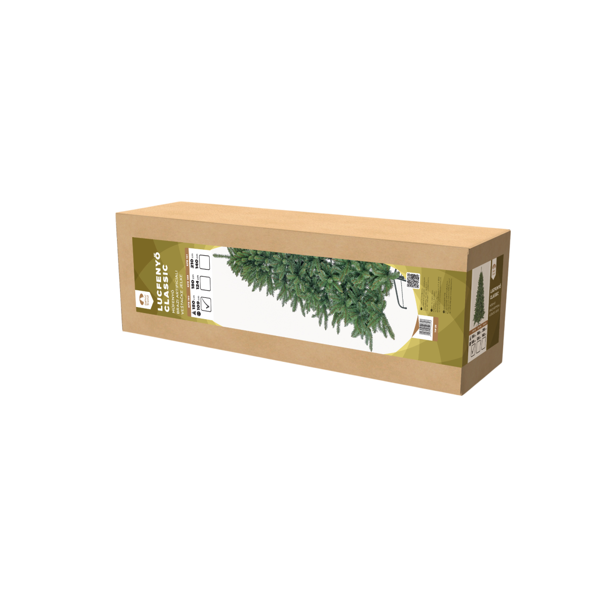 Ez a gyönyörű lucfenyő műfenyő tökéletes választás az ünnepi hangulat megteremtéséhez. Rövid tűlevelei könnyen díszíthetők, természetes és élethű megjelenésük pedig garantáltan feldobják a karácsonyi dekorációt. A pántos ágkonstrukciónak köszönhetően villámgyorsan felállítható, és januárban sem kell aggódnod a tűlevelek hullása miatt.
