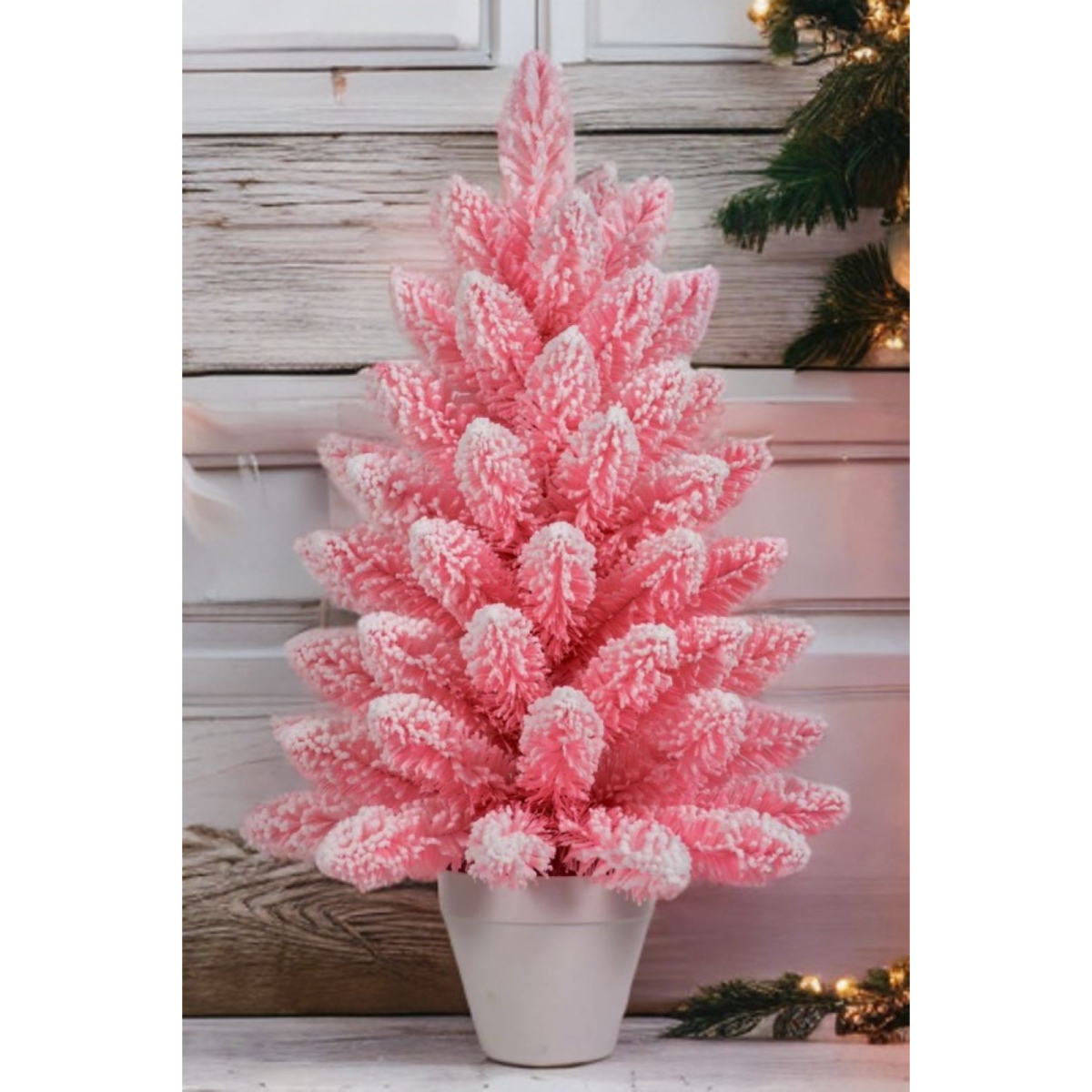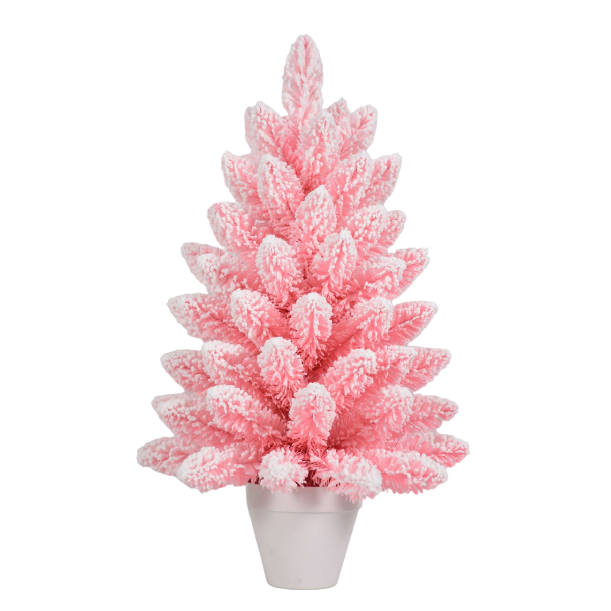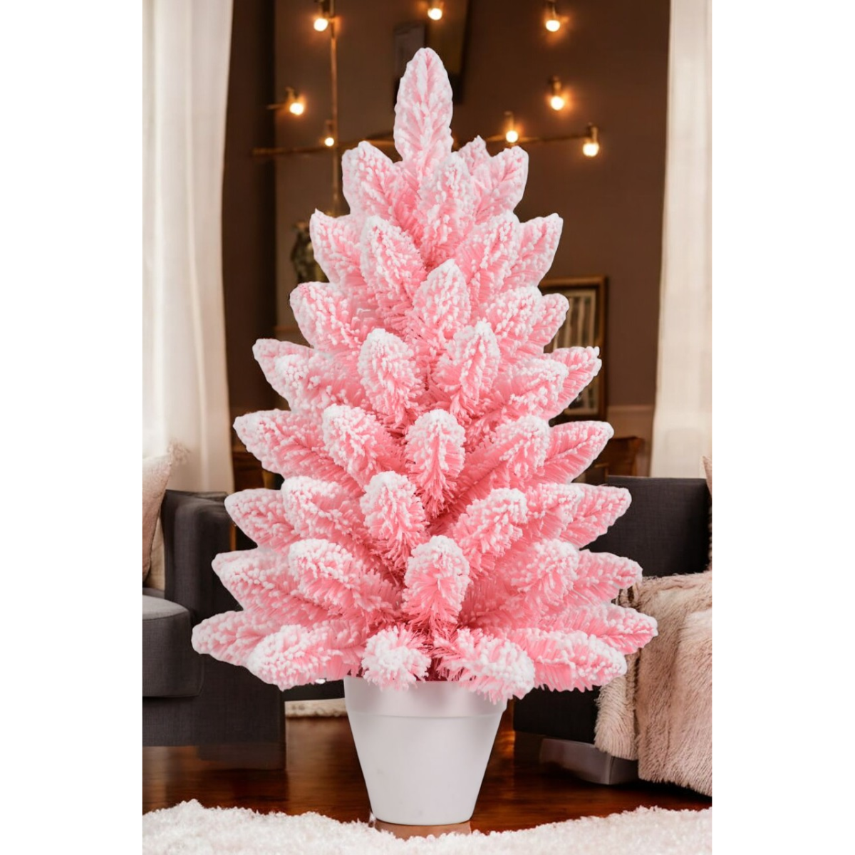 Kis méretű rózsaszín dekor műfenyő kisebb helyiségek egyedi díszítéséhez. A pink karácsonyfa igazán különleges hangulatot kölcsönöz a szobának, kirakatnak, vendéglátóegységnek. Érdemes a díszítést többféle színű fényfüzérrel is kipróbálni az eltérő összhatások miatt.