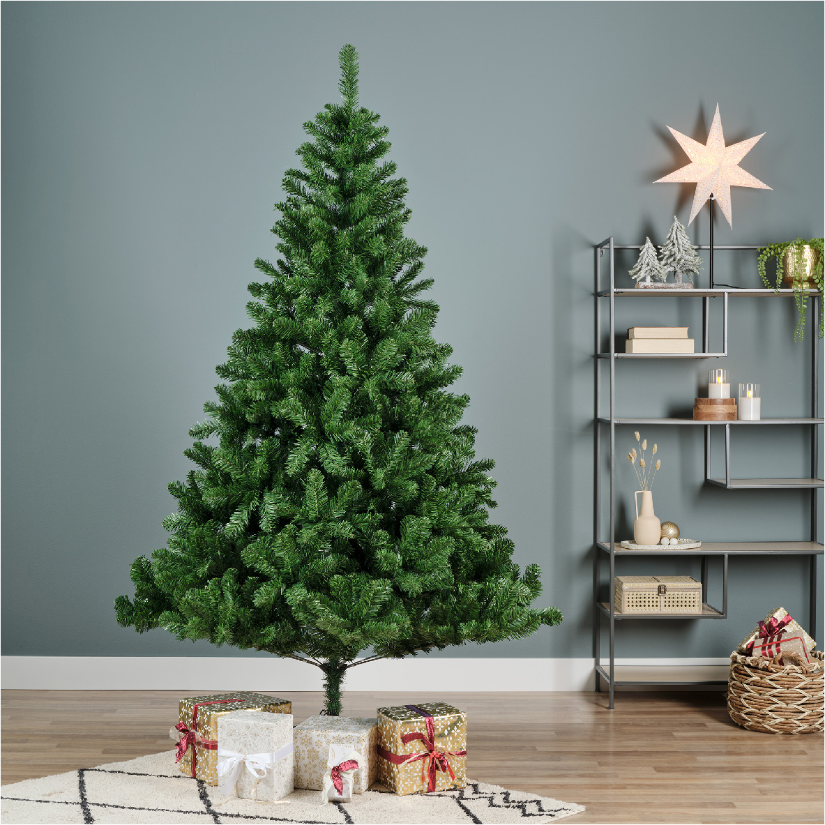 Gyönyörű, gondosan kidolgozott, valósághű karácsonyfa, mely megjelenésével meghitt karácsonyi hangulatot teremt otthonában.
