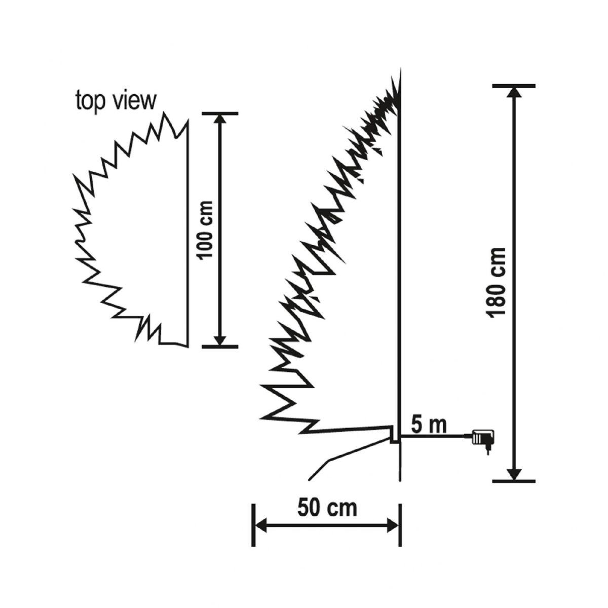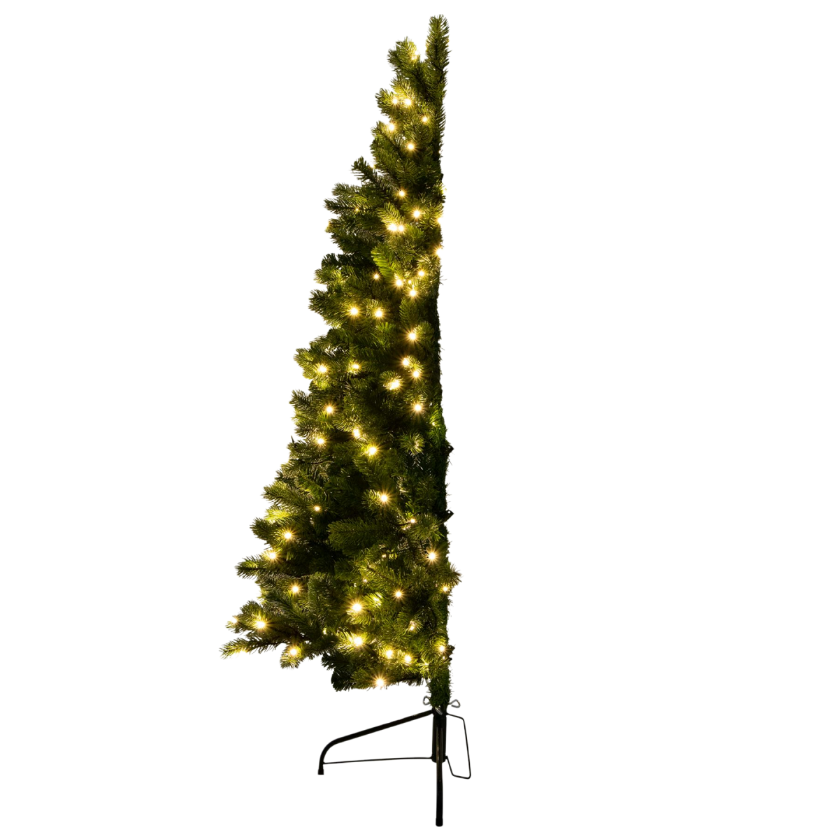 Ez a 180 cm magas, stílusos beltéri fél műfenyő tökéletes választás minden kisebb méretű otthonba. A fal síkjához állítható kialakításának köszönhetően helytakarékos megoldást nyújt. A 240 db meleg fehér LED fényforrás varázslatos hangulatot teremt, míg a 573 csúcs és a 3D + 2D vegyes tűlevelek élethű megjelenést biztosítanak. Az ágak zsanéros csatlakozása egyszerű összeszerelést tesz lehetővé. A stabilitást a fém talp garantálja, a tápellátást pedig a beltéri hálózati adapter biztosítja.