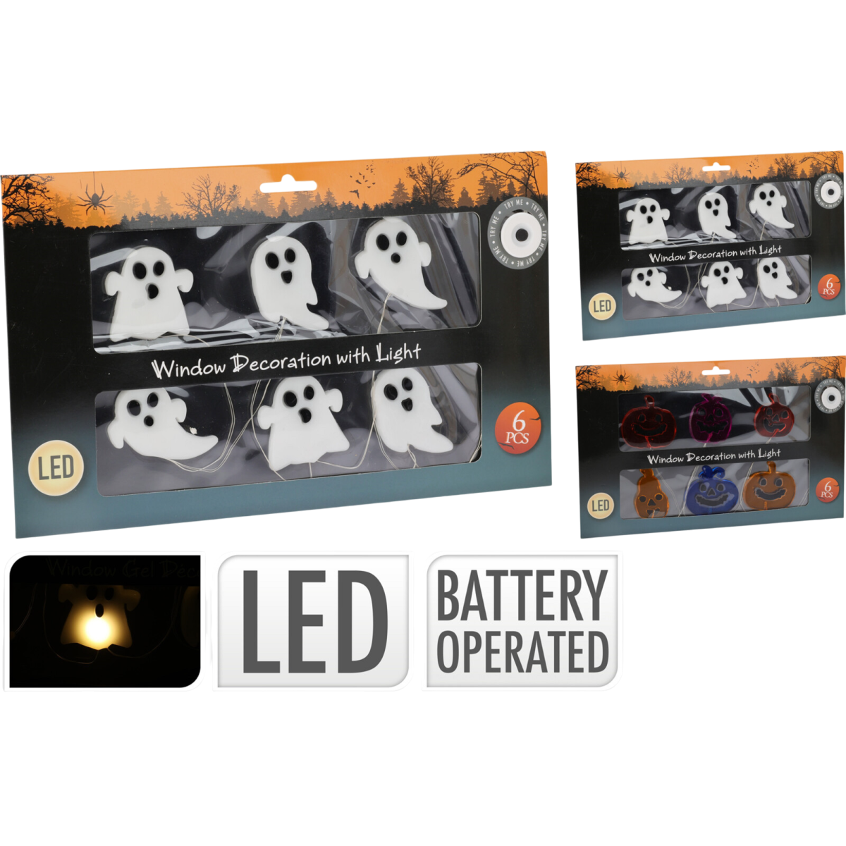 Ez a LED-del világító halloweeni ablakmatrica 6 db játékos figurával halloweeni hangulatot varázsol otthonodba. Gél állagú dekoráció, mely ragasztó nélkül tapad az ablakra, így bármikor nyom nélkül eltávolítható.