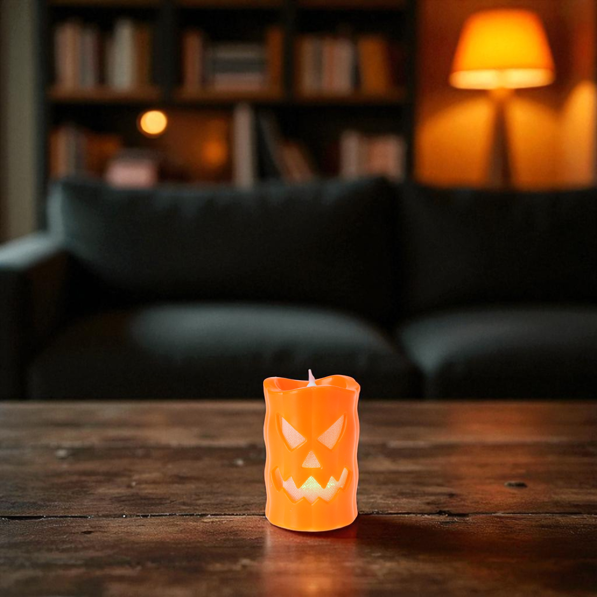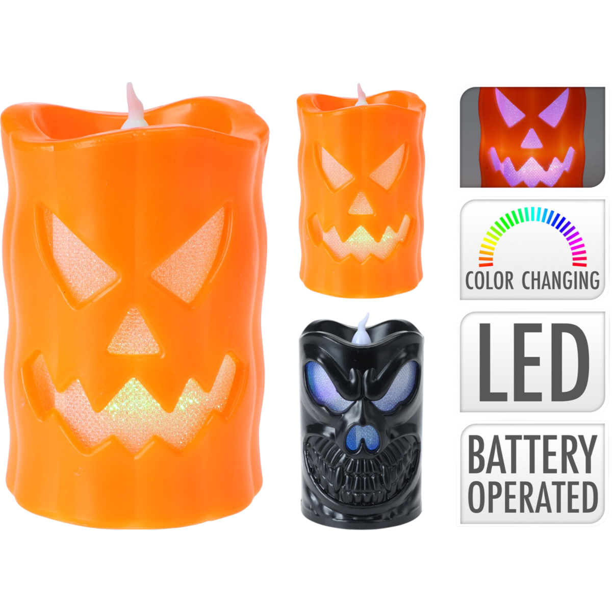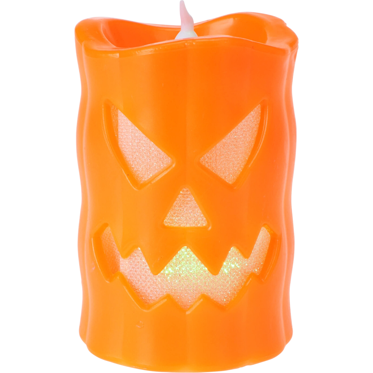 Ez a vidám, ugyanakkor klasszikusan rémisztő arcot formázó, LED-es halloween dekor gyertya ideális választás beltéri hangulatvilágításhoz.